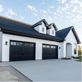 New door installations (raised-panel, carriage-style, full-view glass, custom finishes)